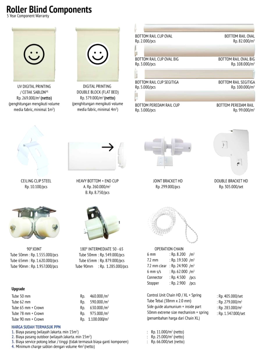 Merupakan tirai dengan model penyimpanan kain menggulung di atas / di bawah. Tampilan estetika akan lebih lengkap dengan Roller Blinds untuk jendela ruangan Anda yang modern & minimalis. Untuk posisi / letak jendela yang tinggi atau lokasi di luar ruangan akan lebih sesuai dengan penggunaan Roller Blinds.