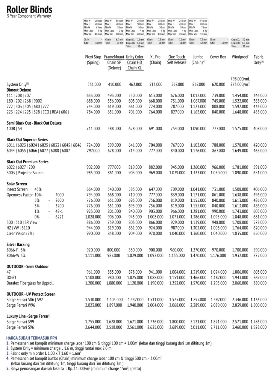 – Solar Screen (terbaik dalam proteksi sinar UV & membuat ruangan teduh dengan cahaya masuk ± 5%)